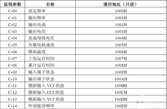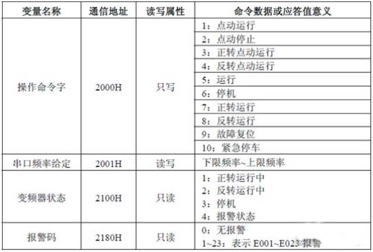 变频器的控制命令和状态通信地址如下: