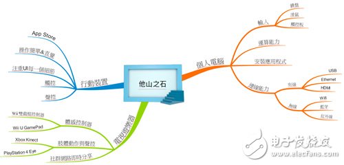 图1 个人电脑、电视游乐器与行动装置可供智能电视借镜的人机互动相关技术。
