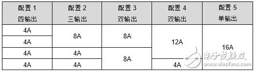 ○支持四个独立的4A输出直至单个16A输出,通道之间易于并联以共享负载