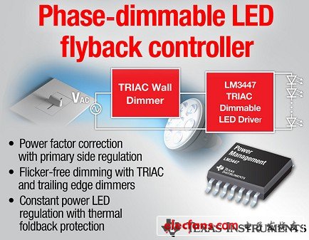 日前,德州仪器 (TI) 宣布推出一款支持恒定功率调节的最新 LED 控制器。该 LM3447 AC/DC LED 驱动器包含调光器检测、相位解码器以及可调节保持电流电路,不但可在包括 A19、E26/27 以及 PAR30/38 灯泡在内的离线隔离式 LED 照明应用中实现平稳无闪烁调光,而且还支持改装灯具的应用。