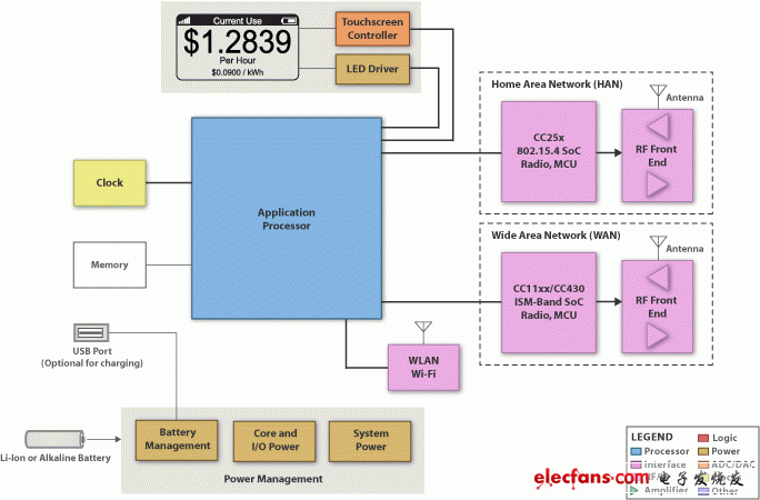 常见的无线通信有 ZigBee(802.15.4 2.4GHz,常用于美国)或无线 MBus(低于 1GHz,更常用于欧洲)。这类通信可以通过片上系统(MCU 和收发器)启用,或者由一个运行其它配置文件堆栈(与连接无线电收发器相连)的 MCU 组建,具体情况应视系统拓扑而定。在这两种情况下所涉及的硬件和软件均可由德州仪器 (TI) 和 TI 开发人员网络提供。高端 IHD 还可以选用现已上市的 WIFI 技术。