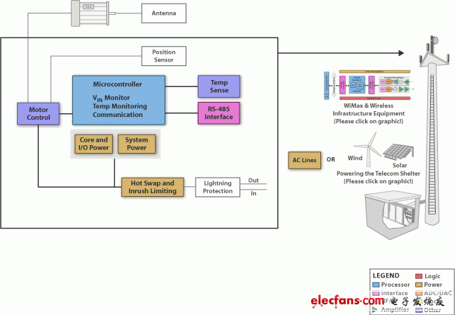 该解决方案包括一根电机驱动天线(通过 RS-485 即可与 BTS 通信)和一台可控制通信并执行监控功能的微处理器。大多数 RET 系统都使用 AISG 协议(天线接口标准组),它是一个针对这些系统的控制接口的开放标准。