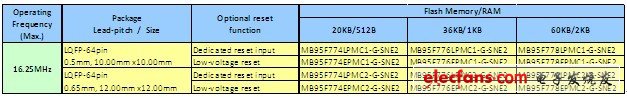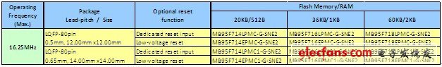 新型产品具有LCD控制功能。MB95770系列最高可以显示224个像素,而MB95710系列最高可显示288个像素。