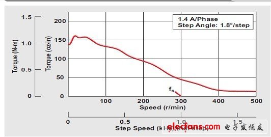 图 1 显示了某个马达制造厂商的传统步进速率/扭矩曲线图,其中起始频率fs为一个重要参数。我们必须知道,要想正常启动这种特殊的马达,必须使用一个小于 fs 的步进速率。使用大于 fs 的步进速率启动马达,可能会使马达停转,并失去同步性。一旦出现这种情况,马达转动控制将受到严重的影响。表面看起来,这是一个严重的问题,但实际却很容易解决。您需要做的只是让马达以某个低于fs的步进速率启动,然后提高速度,直到达到目标速度为止。遵循这一原则以后,步进马达便可以通过远超 fs 的步进速率来驱动—只要速度保持在所示扭矩/速度曲线以下。
