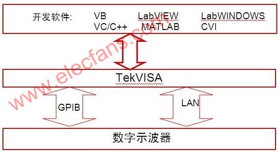 计算机通过GPIB或 LAN(网口)与示波器建立连接来控制示波器,其系统的硬件构架图见图1。