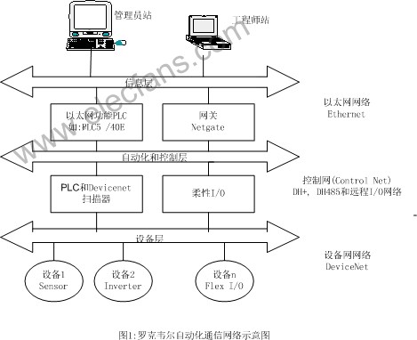 Ethernet)到控制层(ControlNet)和现场层(DeviceNet)的无缝连接。如图1所示.