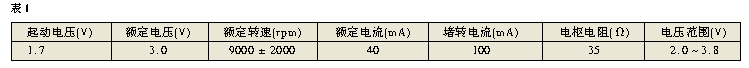 微震电机(又称空心杯电机)具有体积小、震感明显的特点,常见的形状如图1所示。市场上有许多型号的产品,均为直流电压驱动工作。这里以 WZIS-6001A(B)型为例,其特性见表1。该电机在电压由2.0~3.8V变化时,随着电压的升高,电机的转速逐步升高(由7000~11 000rpm)。经实验测试,当电压产生0.3V的变化时,可以通过电机的震动感觉到电机转速的变化。
