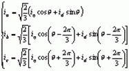 矢量控制也就是通过控制两相的转子参考坐标d-q轴的电流来等效控制电枢的三相电流。通过前面的系统控制框图可以清楚理解这种等效,可以用下面的公式表示: