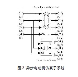 图3 为异步电动机仿真子系统的内部模型结构,封装后为四个输入端、7个输出端的Motor 子系统模块(见图2)。
