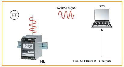 图4:一个HART接口模件(HIM)从HART信号里面提取数字化数据并且把它存储在自身的MODBUS存储器映射里面,这样任何MODBUS主设备就都可以读取这些数据了。原始的4-20mA信号仍旧象以前一样被连接到控制系统。