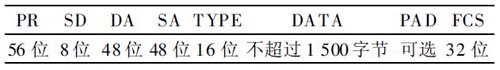以太网协议有两种,一种是IEEE802.2/IEEE802.3;另一种是以太网的封装格式。现代的操作系统均能同时支持这2种类型的协议格式,因此对我们来说只需要了解其中的一种就够了,特别是对单片机来说,不可能支持太多的协议格式。本系统采用IEEE802.3以太网协议,表1给出了以太网帧格式的封装形式。