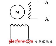 由图1可知,该步进电动机有A和B两相绕组,由于感应子式步进电动机的特殊性。当在A、B两相绕组中通以对称的正旋交流电时,将产生圆形旋转磁场,而如果按照