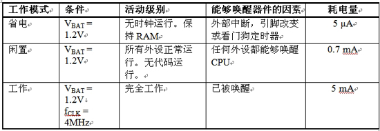省电寄存器:虽然多种睡眠模式可简化功率管理,但它们往往只能够启动或关断整个外设部分。这样,即使只使用一个外设,其它的外设也必须处于工作状态下。省电寄存器(Power Reduction Register)可让开发人员能够完全单独控制各个外设模块的开关。在工作模式下禁用某个外设模块可以降低5-10%的总功耗;在闲置模式下则可节省10-20%。