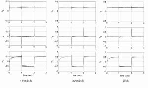 从图3中数值性能的比较可以看出,16 位定点系统有若干个伪瞬态 (false transient) 与振铃,而 32 位系统则没有这些现象。32 位单精度浮点与 32 位定点的结果非常相近。