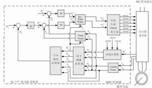 图 1 是通用数字马达控制系统的结构简图。算法可在数字控制器上实现,数字控制器生成的控制输出信号可通过逆变器驱动马达。电流及电压测量等反馈信号通过ADC反馈至该算法。
