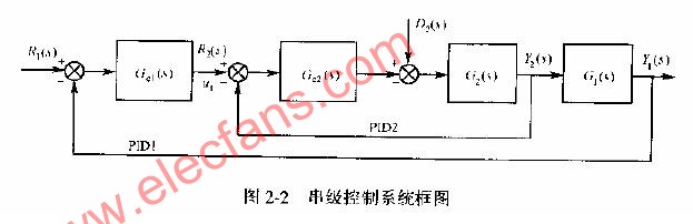 串级计算机控制系统的典型结构如下图所示,系统中有两个PID控制器,Gc2(s)称为副调节器传递函数,包围Gc2(s)的内环称为副回路。Gc1(s)称为主调节器传递函数,包围Gc1(s)的外环称为主回咱。主调节器的输出控制量u1作为副回路的给定量R2(s).