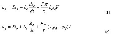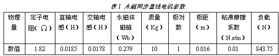 式(1)、(2)中ud,uq,id,iq,Ld,Lq 分别表示直线电机直、交轴电压、直、交轴电流和直、交轴电感,R为定子电阻,
