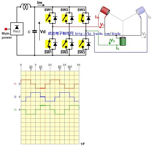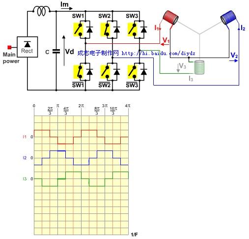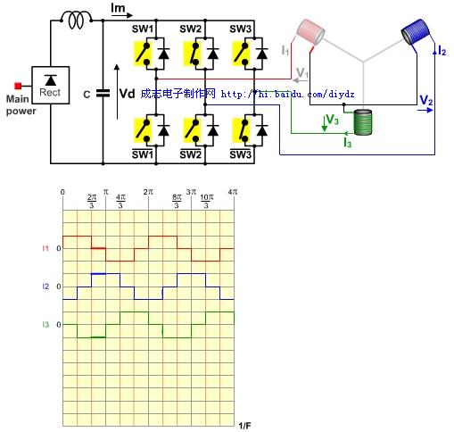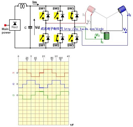 以下这是上一期(电动车)直流无刷电机的原理与控制里的原理图,在这一期里着重介绍无刷电机的运行原理。