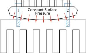 除TinyDIP/SMD外,SPM的表面都会有一定的翘曲。图4为这种翘曲的一个夸张示意。模块是用一些从表面中间穿出的螺丝紧固在散热片上。如果安装恰当,这种凸状表面能保证有足够的热量从模块传递到散热片。如果紧固螺丝用力不均,就可能在模块内产生应力,导致模块破损或性能下降。建议采用图4所示的螺丝紧固顺序(先按1〜2的顺序预紧固,再按2〜1的顺序最终紧固)。通常,预紧固扭矩为最大额定紧固扭矩的25%。只要散热片与器件紧贴好了,就可通过SPM的内置热敏电阻获取散热片的温度,从而简化电路板的设计。