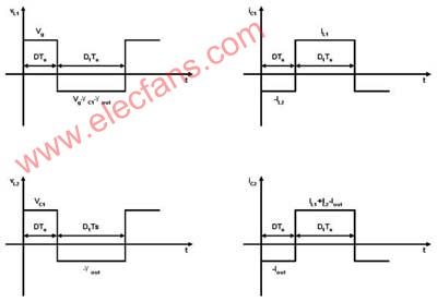 在图 3 中以图解方式说明了基于[等式 12] 和[等式 14] 的电感器电压和电容器电流波形。