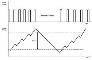 电阻阻值较低时,频率增加,当输入电压值较低时,频率下降。 在最低值R5时的Vg设置为零,C3增加,直到获得调制。 C3确定最大电荷传递量;较小的R3值需要较大的 值(大于交流电荷传递),以便实现相同的工作周期调制百分比。然后R5增加,直到工作周期匹配输入至输出比率。 此时,Vg增加到它的最大值。 如果工作周期不足够下降,则R5将增加,直到工作周期匹配输入到输出比率。 输入再次下降到它的最小值,并且如果工作周期不足够的高,则C3下降。 此过程将重复,直到时间常量 τ 允许工作周期在整个输入电压范围内相应的变化。
