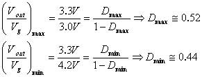 其中, 代表开关的工作周期, 是工作周期的补量,定义为 。 此等式系统的解答可表示如下: