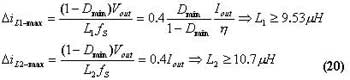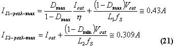 这些表达式可用于选择L1 、L2 、C1 和C2 的值,以便获取开关纹波量值的所需值。