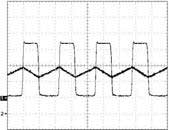 图 10: Vg=3.0V 时 L1 开关信号的电流波形。 1) VSW, 2V/div,