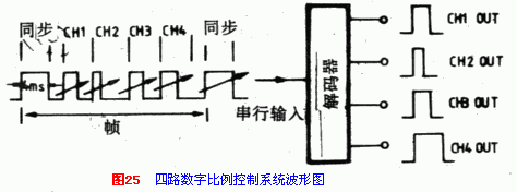 上述伺服电机型常用于多路遥控系统。图25示出了四路数字比例控制系统的波形图。