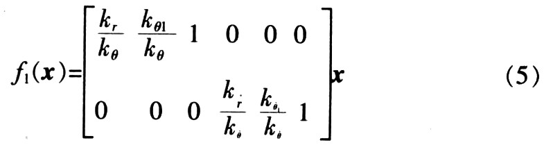 为实现变量融合,分别选取两个反馈系数为控制主元,其他输入变量可根据与主元的相关性和可融合性分别归并到两主元中。对于二级倒立摆,由于摆杆2的控制难度最大,分别选择θ2、θ2为控制主元,相应系数为:kθ=kθ2,kθ=kθ2融合函数的输出向量为: