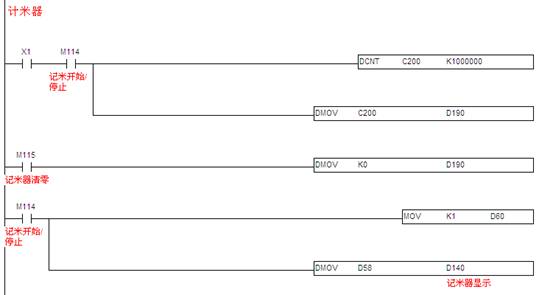 编码器的计米器,安装在张力浮动辊上面,从而实现自动计量长度。 计米器程序如下:
