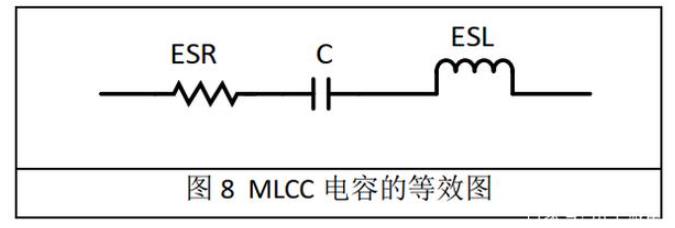 变压器的频率高达 70MHz,芯片在开关期间需要初次级供电端 VCC对 GNDA 以及 VISO 对 GNDB 需要放置容量约 10μ F 储能电容来提供开关期间的瞬间大电流。此外, 需要合适的去耦电容来滤除高频噪声。 去耦电容一般选用 MLCC 多层陶瓷电容,但陶瓷电容存在着寄生电感,频率越高,越不能忽略 ESL 的影响。 MLCC电容的等效图如下所示。