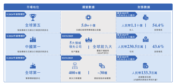 智能传感交互解决方案提供商。截至2025年3月31日,产品已超400种,广泛应用于