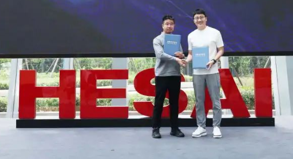 可庭科技与禾赛科技战略合作签约 左:可庭科技割草机业务 CTO 秦岭 右:禾赛科技联合创始人及 CEO 李一帆