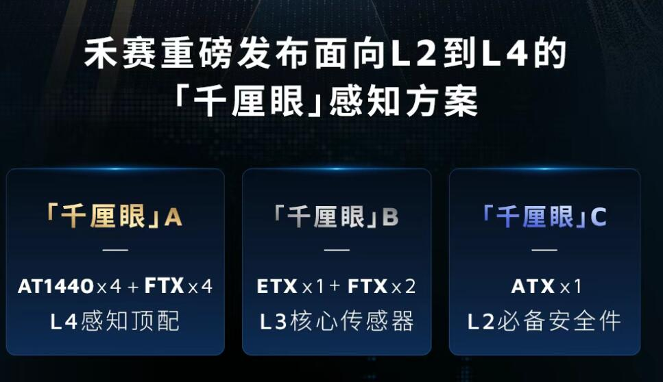 在技术开放日上,禾赛科技推出了面向L2到L4的激光雷达感知方案“千厘眼”,并正式发布了新一代车规级激光雷达产品ETX车规级超远距激光雷达、AT1440车规级超高清激光雷达和FTX车规级纯固态补盲激光雷达。