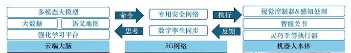 现代人形机器人的核心技术体系由“大脑”“小脑”“肢体”三部分组成。其中,“大脑”作为核心,早期仅能处理基本环境感知和执行预设任务,现已可以利用视觉感知大模型、生成大模型和语言大模型等先进技术,实现高级感知、创造性想象、精准决策和情感交互,显著提升了机器人在复杂环境中的适应性和任务处理能力。“小脑”负责将“大脑”的决策转化为流畅且稳定的动作指令,通过强化学习和模仿学习,克服早期动作僵硬和易失稳的问题,具备了通用任务执行能力。“肢体”则由先进的零部件构成,从早期动力不足、自由度低的笨重设计,发展到现在能够完成高精度任务,拥有更高的灵活性、耐用性,甚至超越人类的能力。随着技术的进步,人形机器人“大脑”“小脑”和“肢体”三部分的协同优化,显著提升了人形机器人的整体性能。