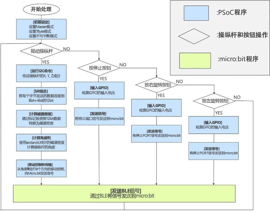控制器与 3D 磁传感器及微控制器 (MCU) 之间通过 I2C 通信协议进行信号传递,MCU 作为主控设备,3D 传感器作为从设备,实现各类信号的交换。下图 (图3) 显示了控制器工作的简单流程图: