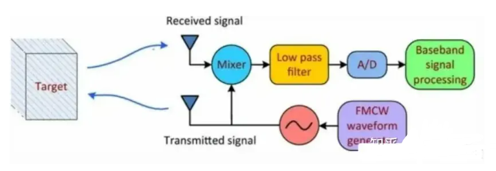 通过测量发射电磁波与返回电磁波的频率变化解调出被测目标的距离及速度;