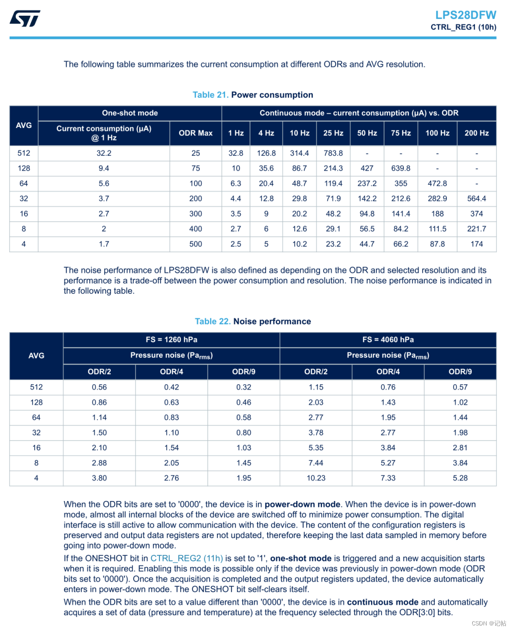 这样的设置组合有助于提高 LPS28DFW 传感器的精度,特别是通过降低噪声和增加测量稳定性。这些设置对于需要高精度测量的应用场景特别有用。