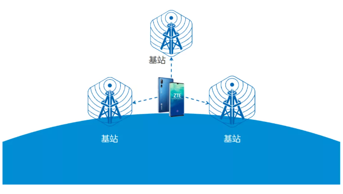 也就是常说的 LBS (Location Based Service,基于位置的服务),它的原理主要是三点定位。用户手机开机后会向周围的基站注册,同时手机会对不同基站的下行导频信号进行测量,得到各个基站信号的到达时刻和达到时间差,然后对比基站的位置坐标数据,更正手机自身的位置数据。