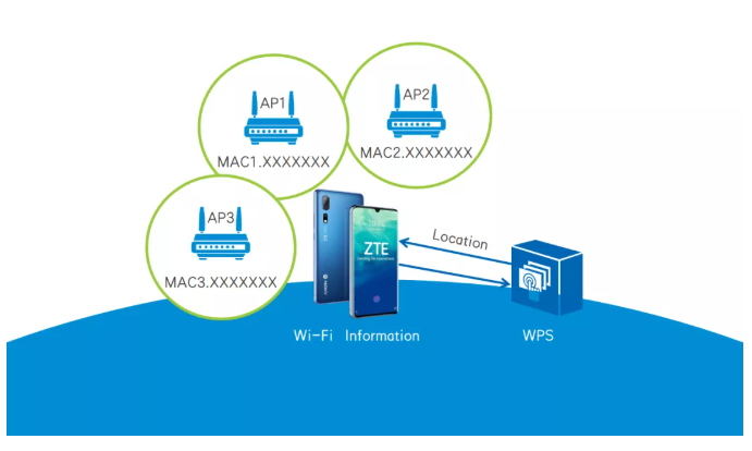 Wi-Fi 定位的原理与移动基站定位的原理类似,都是根据附近已知位置的站点进行三点定位。只不过在 Wi-Fi 定位中,无线 AP 充当了移动基站的角色,将基站“搬到”了室内。