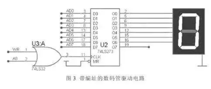 下面以使用数据缓冲器74LS273驱动数码显示为例,分析P2口编址驱动的静态数码显示电路的设计。