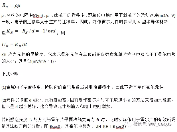 由上式可知,适当地选择材料迁移率(μ)及霍尔片的宽长比(b/L),可以改变霍尔电势UH值。