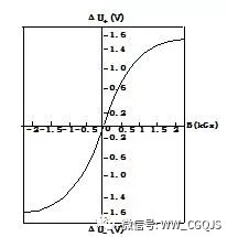 在给定条件下磁敏二极管的输出电压变化量与外加B的关系。常有单只使用和互补使用两种方式。单只使用时正向磁灵敏度大于反向。互补使用时正、反向磁灵敏度曲线对称,且在弱磁场下有较好的线性。