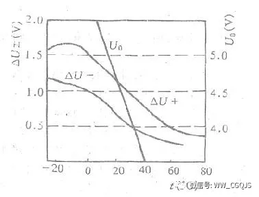 在标准测试条件下输出电压变化量ΔU随T变化。