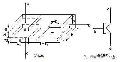 发射极e、基极b、集电极c;在射极和长基区间的一个侧面制成一高复合区r。