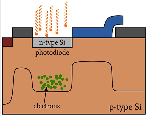 这些变化通过计算泊松标准误差来量化,这意味着光子噪声是入射光子总数的平方根。因此,如果场景用在积分期间在每个像素中平均产生 1000 个电子的光照亮传感器的一部分,则该入射光的物理性质会导致大约 32 个电子 RMS 的噪声。光子到达的这种随机变化是大自然强加的,使得任何图像传感器都不可能具有零噪声。