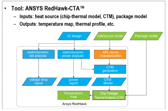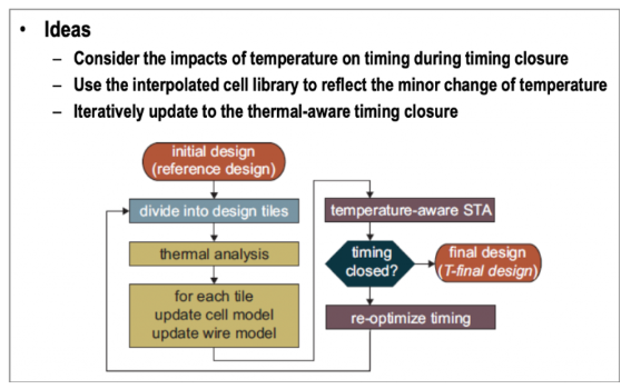 然后,Lim教授讨论了用于这些分析的工具流。其中说到被广泛用于执行许多任务的ANSYS RedHawk,包括功率,热和红外落差分析。所有这些工作都是基于对跨多个温度配置文件的每个路由段和设备的细粒度分析。下图是流程的概述。