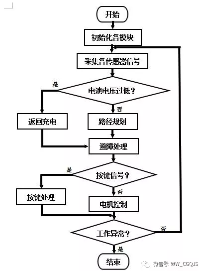 为了使清洁机器人能按照我们所要求的工作模式进行清扫,首先要规定其运动规律,如下图所示: