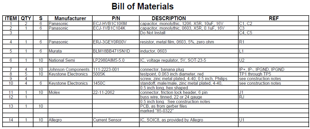 本电流检测方案BOM元器件总数27个。其中,ACS712传感器芯片来自Allegro公司,采用小型SOIC8封装,引脚1和2、3和4均内置保险。检测直流电流时,1和2、3和4分别为待测电流的输入端和输出端。该芯片一款经典霍尔电流传感器,虽然市场有库存,在新设计中建议改用ACS723/ACS724或ACS71240。